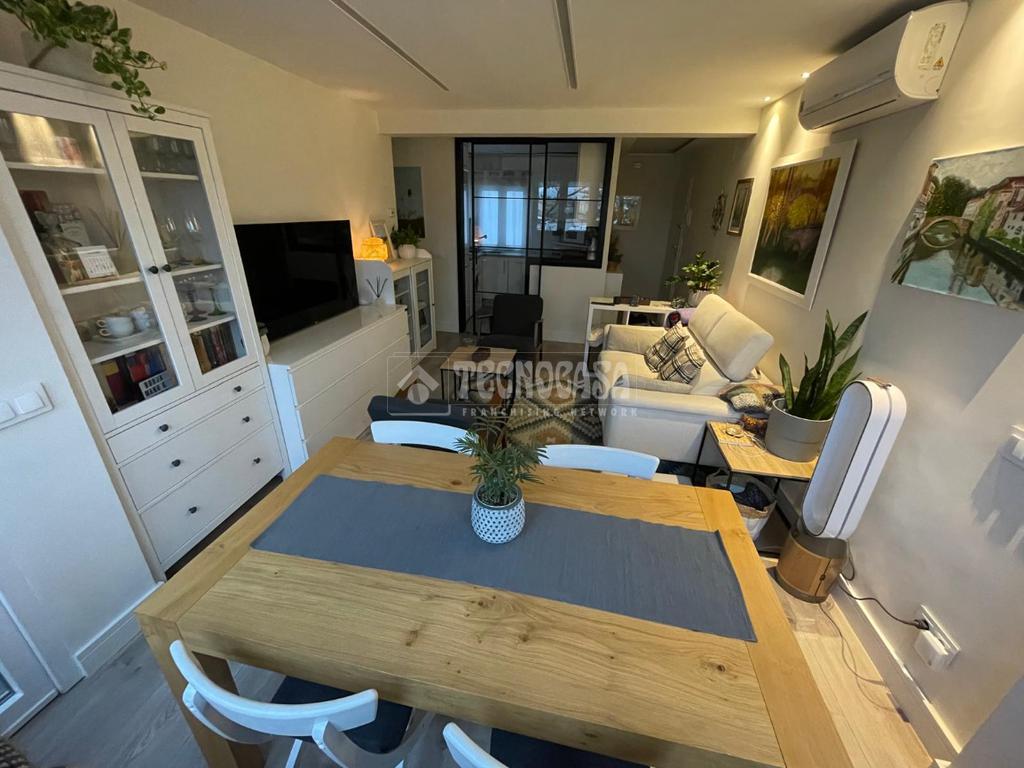 El piso ha sido reformado integralmente, ofreciendo un espacio moderno, cómodo y funcional, con aire acondicionado, calefacción centralizada de gas natural, armarios empotrados, suelo de tarima flotante y lámina aislante acústico-térmica, ventanas de PVC blancas oscilobatientes con acristalamiento térmico y acústico con gas argón, persianas motorizadas y aislantes y trastero incluido en el precio.